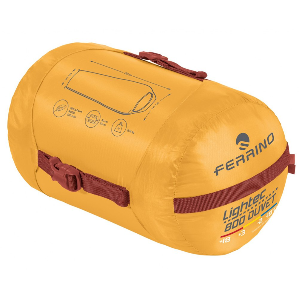 Las dimensiones describen las medidas generales del saco de dormir en su formato desplegado. El peso se presenta como dato cuantitativo dentro de la ficha técnica. El material forma parte de la composición estructural del producto. El rango de temperatura se expresa como valor técnico indicado en la descripción correspondiente.