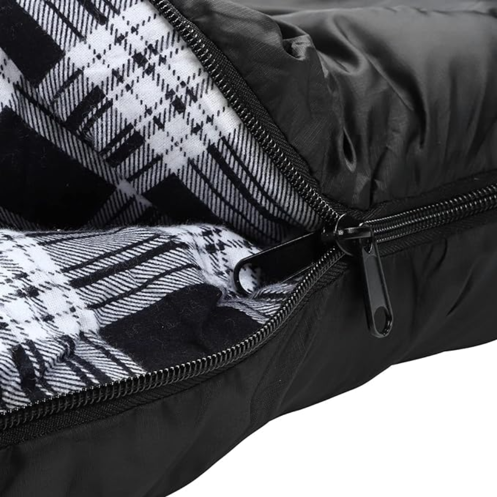 El saco de dormir Mcota Doble Blanco / negro está diseñado con una construcción de tejido exterior y relleno que proporciona un aislamiento térmico. Su cierre principal es de tipo cremallera, que recorre el lateral y permite una apertura y cierre eficientes. El interior está compuesto por una capa suave que se adapta al contacto con la piel. El producto incluye un sistema de compresión que facilita su almacenamiento y transporte. Este saco de dormir es apto para diversas condiciones climáticas, siendo su rango de temperatura operativa indicado por el fabricante. Su diseño se adapta a diferentes posiciones de descanso, y cuenta con bolsillos internos para objetos personales. La forma rectangular ofrece un espacio amplio, favoreciendo el movimiento durante el uso. Suitable para acampar, realizar excursiones o uso en entornos de descanso temporales. Fácil de limpiar, se puede lavar a máquina a temperaturas reducidas. Dispone de materiales que cumplen con normativas de seguridad y protección del medio ambiente.