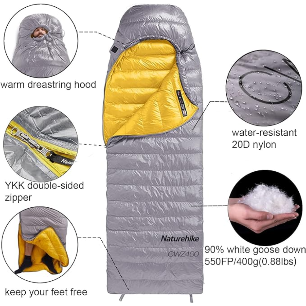Naturehike Piuma d’oca Ceniza L 220×85 cm Saco de dormir