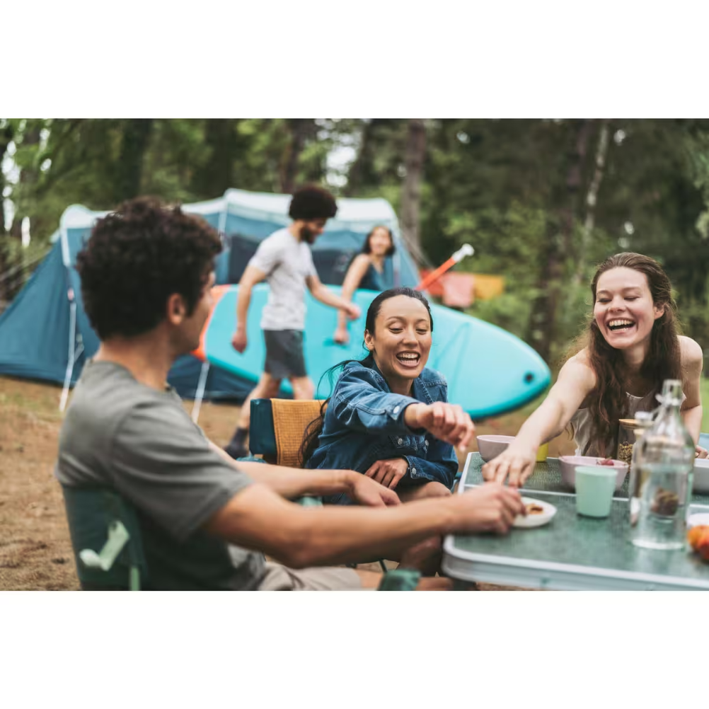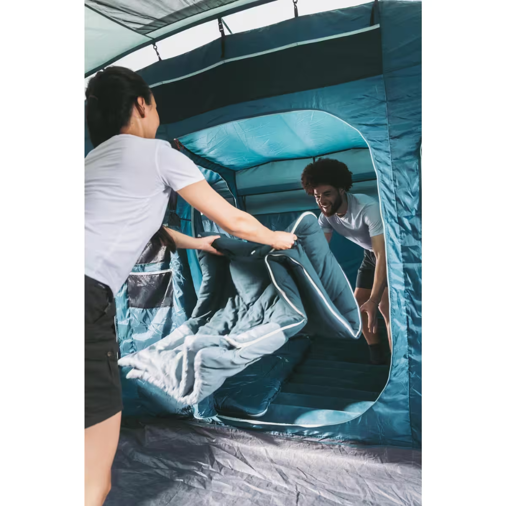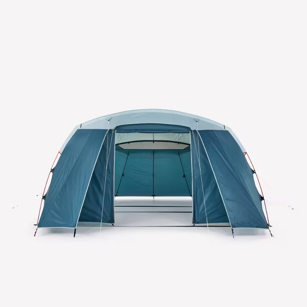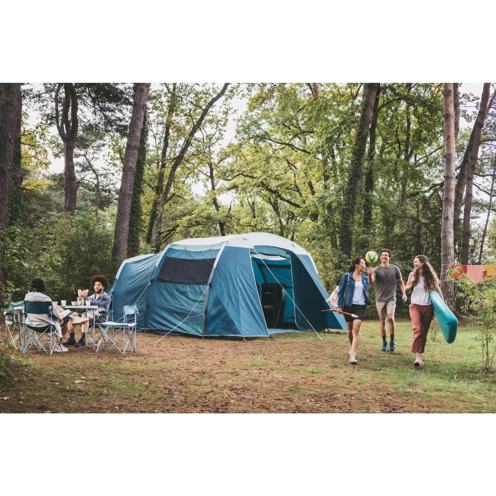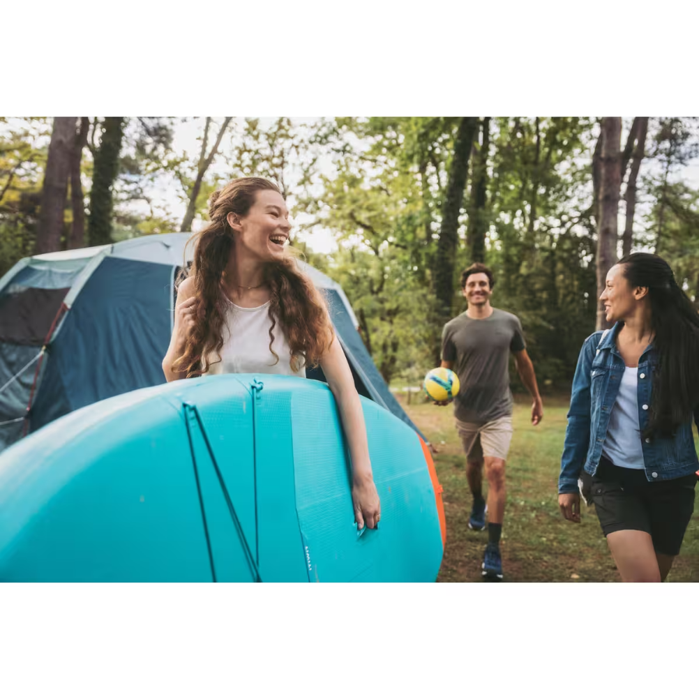 La tienda de camping Quechua 6 Personas con Varillas está diseñada para alojar hasta seis personas. Su estructura se compone de varillas de fibra de vidrio, proporcionando una configuración rápida y sencilla. El tejido exterior está fabricado con poliéster y cuenta con una impermeabilidad de 2000 mm, lo que permite una adecuada protección contra la lluvia. Dispone de una malla en las puertas y ventanas que facilita la ventilación y minimiza la entrada de insectos. La tienda incluye un sistema de anclaje mediante cuerdas y piquetas, asegurando estabilidad en diversas condiciones climáticas. Las dimensiones internas son adecuadas para el uso de colchones y sacos de dormir. La tienda cuenta con compartimentos para el almacenamiento de objetos personales, permitiendo una mejor organización del espacio interior. Las costuras están termoselladas para mejorar la resistencia al agua. Además, se puede montar sin necesidad de herramientas adicionales, facilitando el proceso de instalación en diferentes entornos. La tienda se puede utilizar en campamentos, festivales o actividades al aire libre.