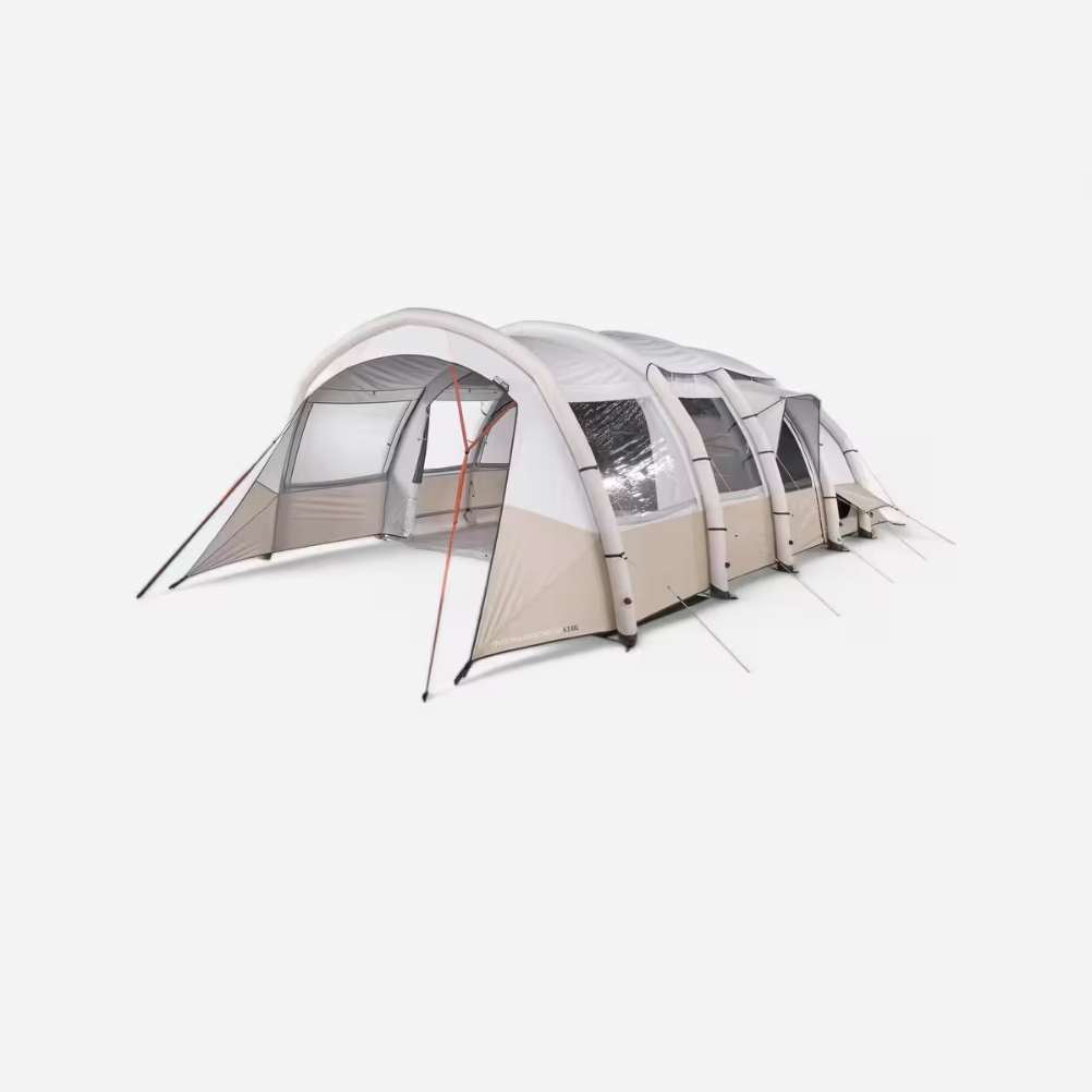 La tienda de campaña Quechua Airseconds 6.3 F&B es un producto diseñado para ser utilizado por un máximo de seis personas. Cuenta con una estructura de dos habitaciones separadas que permite la privacidad. La entrada se encuentra en el centro de la tienda, facilitando el acceso. La ventilación se logra mediante aberturas en las partes superiores, contribuyendo a la circulación del aire. La tienda incorpora un sistema de montaje rápido que permite un ensamble sencillo. Fabricada con materiales que ofrecen resistencia al agua y protección UV, la tienda está equipada con un suelo antifugas, lo que evita la entrada de humedad. Posee un peso que facilita su transporte, y se puede almacenar en un volumen compacto. Los accesorios que incluyen piquetas, cuerdas y una bolsa de transporte contribuyen a su uso práctico. Esta tienda de campaña se destina a actividades al aire libre, como camping y excursiones, y se propone como una solución para alojar múltiples usuarios en terrenos diversos.