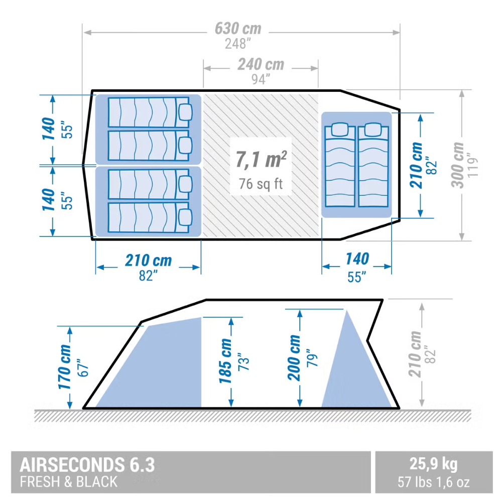 Quechua Airseconds F&B 6.3 6 Personas Tienda de campaña
